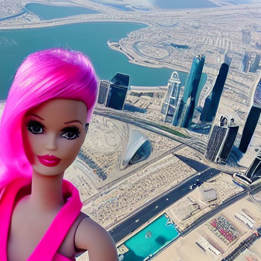 prompts = ["A really giant cute pink barbie doll on the top of Burj Khalifa",