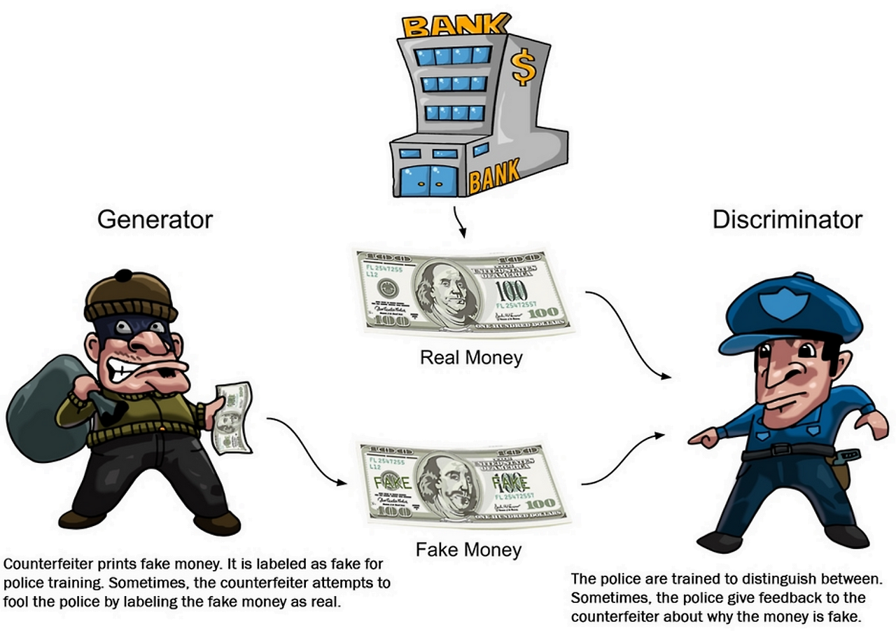 - GANs의 생성 방식: 생성된 데이터와 실제 데이터를 판별하고 속이는 과정을 거치며 생성 모델을 개선