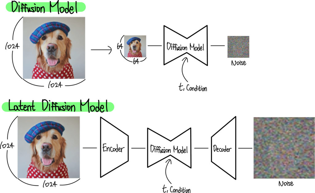 실제 이미지의 고차원 공간이 아닌 잠재 공간에서 노이즈 연산을 반복하도록 설계