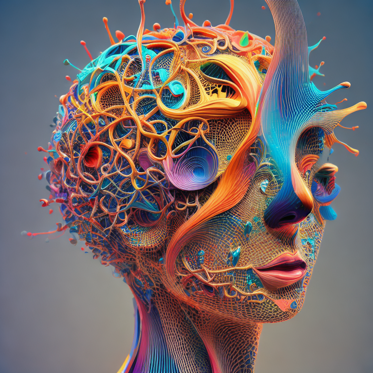 "Beautiful, abstract art of a human mind, 3D, highly detailed, 8K, aesthetic"]